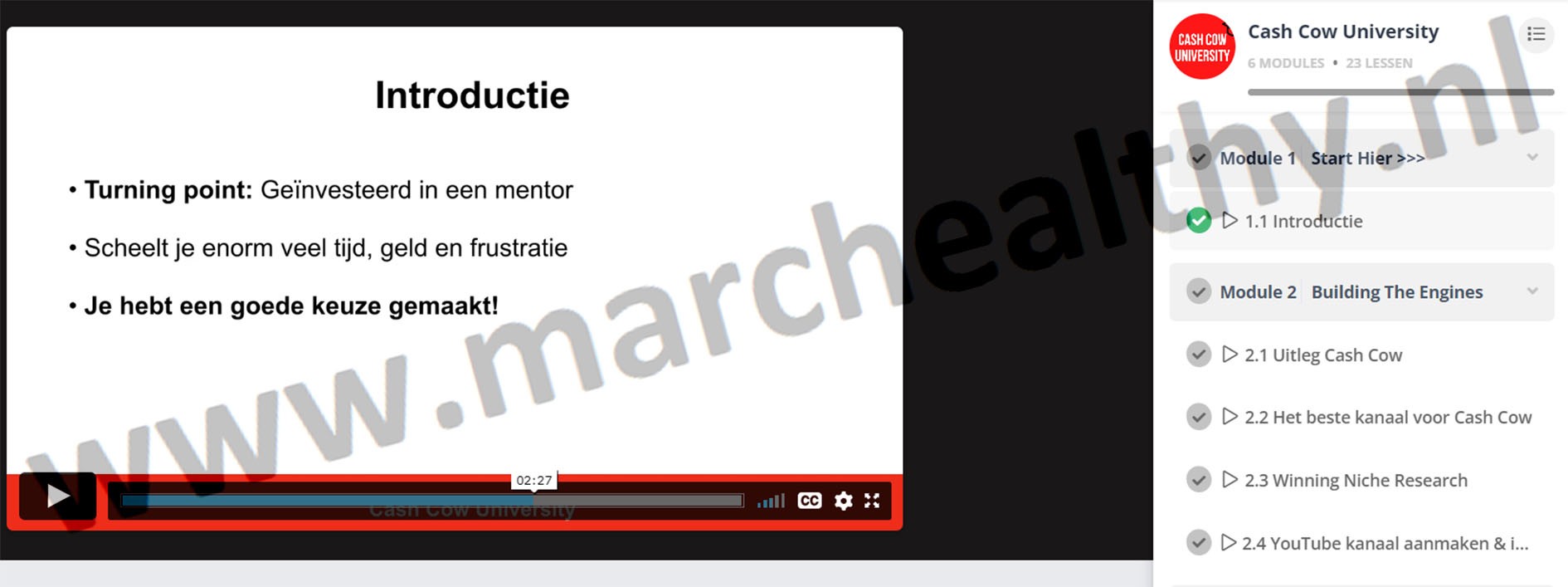 De Cash Cow University laat naar mijn mening zien dat je voor een scherpe prijs al ontzettend veel gaat leren hoe je stap voor stap een cash cow channel moet opzetten en dit doe je in maar liefst 23 lessen in 6 modules.