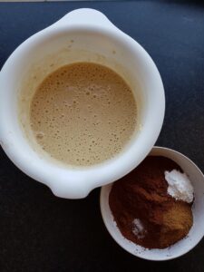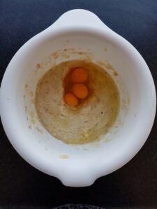 Voeg de 3 eieren toen en vervolgens het kaneel.