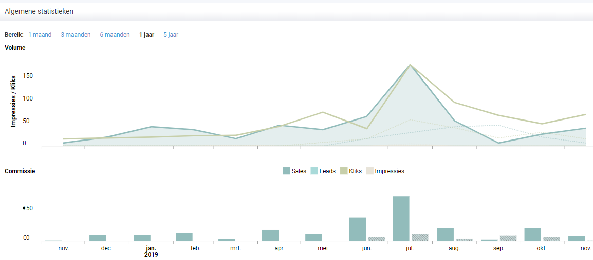 De commissies variëren tussen de 3% en 12% per verkoop. Hieronder een voorbeeld van afgelopen maand, zoals je ziet zijn het relatief kleine bedragen maar genoeg om je website te onderhouden.