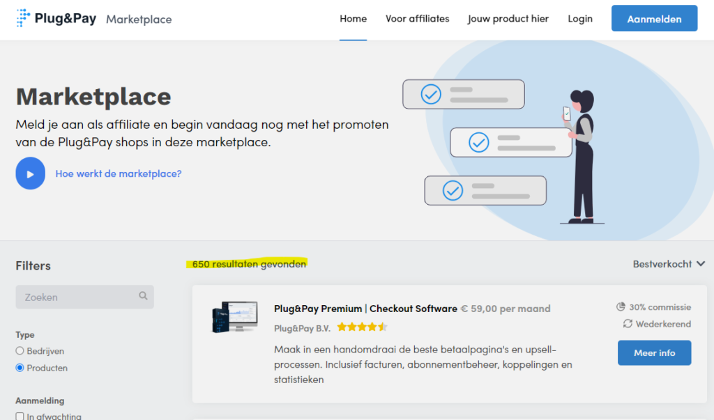 Het kiezen van een affiliate programma is mijn eerste grote stap. Ik zoek naar programma’s die passen bij mijn interesses en die een goede commissie bieden. Er zijn veel online platforms waar ik me kan aanmelden. Wil je online cursussen promoten dan raad ik bijvoorbeeld Plug&Pay aan, die hebben een Plug&Pay marketplace vol producten die je kan promoten en aanmelden is geheel gratis.