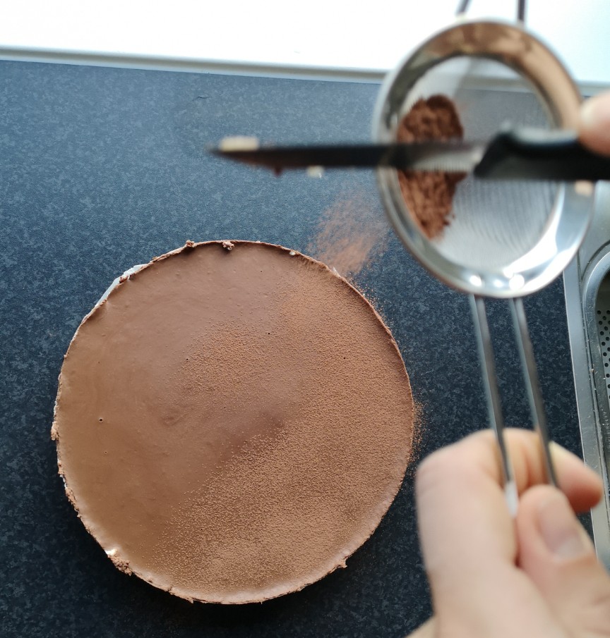 Bestrooi vervolgens de taart met cacaopoeder en smullen maar 😉