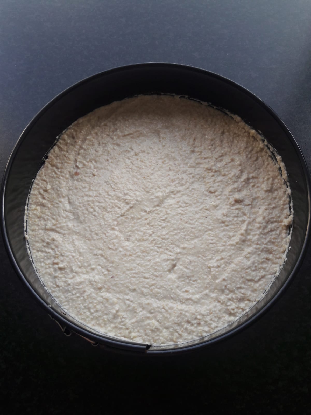 Giet dit vervolgens over de kokoslaag (draai met de bakvorm rond waardoor de bovenste laag mooi verdeeld over de vulling) en zet de taart een nachtje in de koelkast.