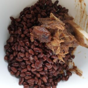 Giet de zwarte bonen af in een zeef, spoel ze af met water en laat ze uitlekken. Voeg de zwarte bonen bij de dadels en roer goed door.