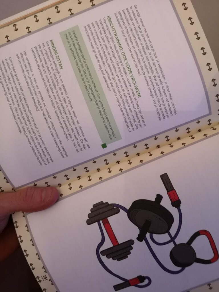 En als dat niet genoeg is geeft het boek veel tips over sporten en het hebben en houden een gezonde leefstijl.