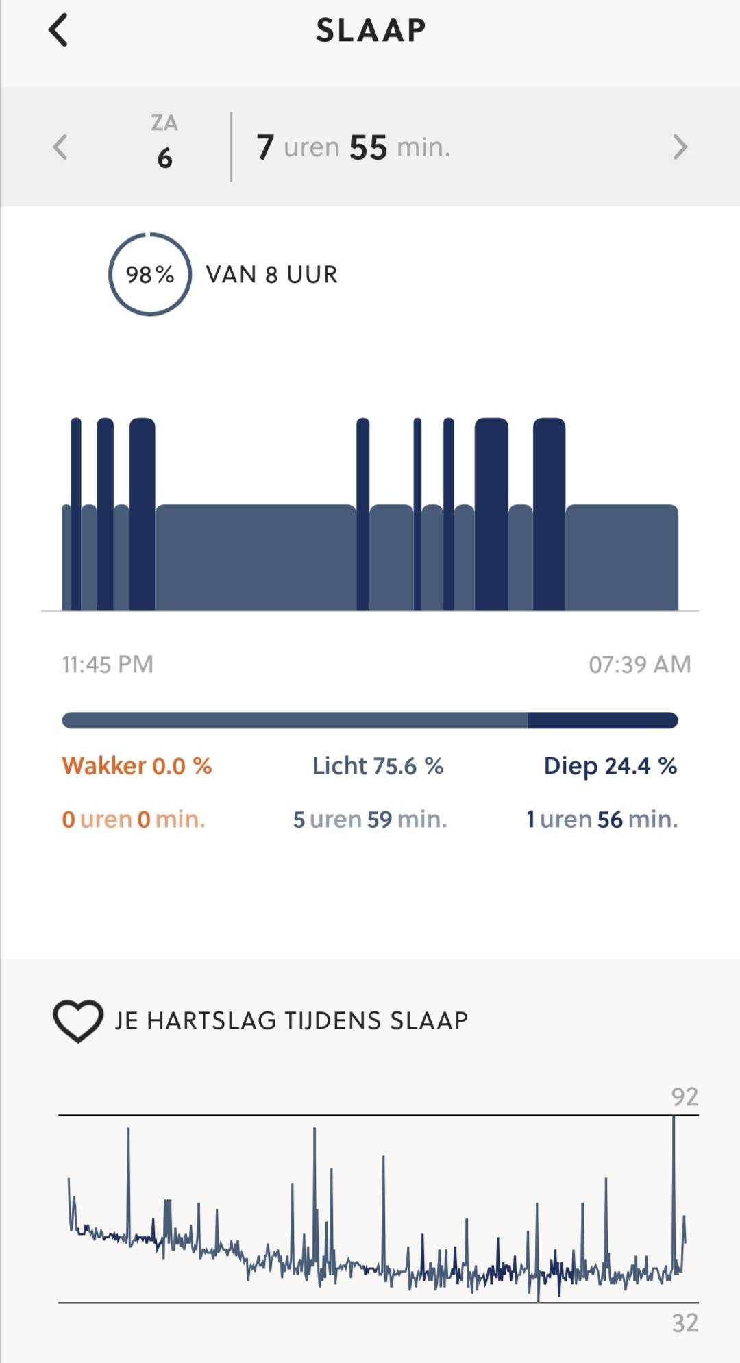 Slaap wordt wel gemeten maar erg algemeen en naar mijn mening niet erg kloppend.