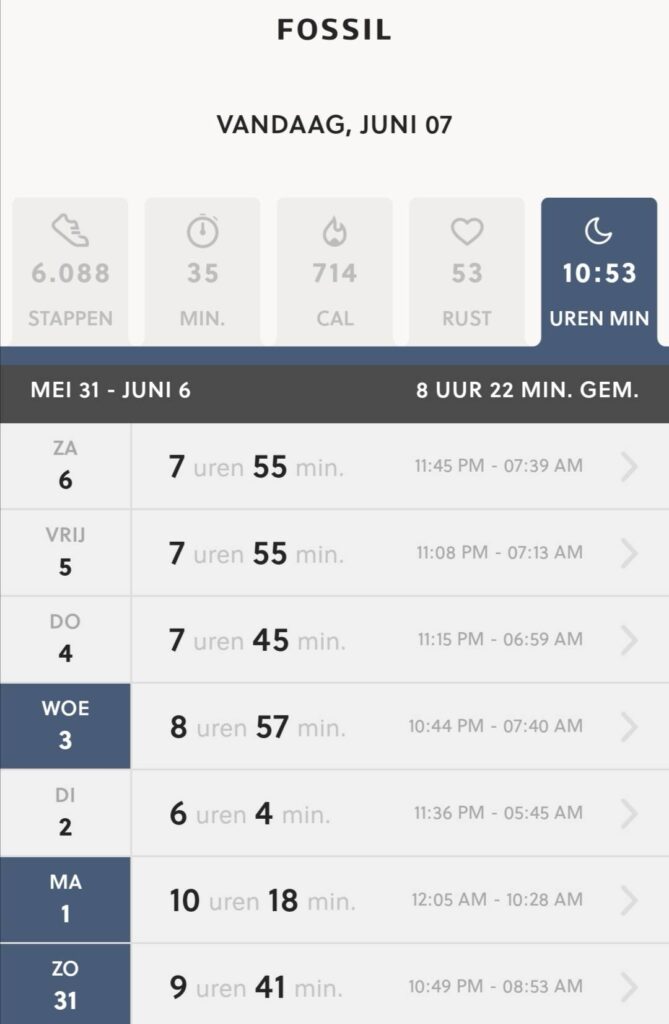 Ik heb de Fossil Collider Hybrid HR dan hoofdzakelijk gebruikt als wekker en Caller ID als er gebeld werd en om te zien hoeveel stappen ik had gelopen.
