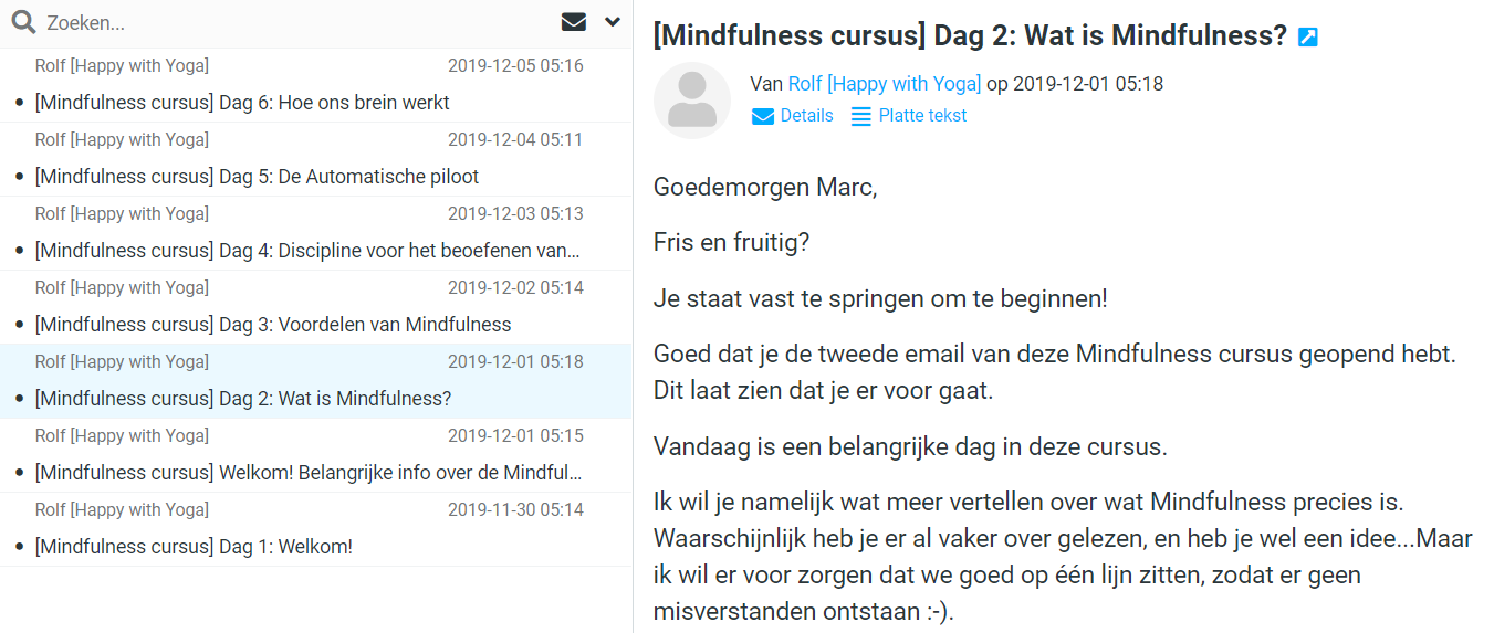 Zoals hierboven vermeld krijg je dus elke dag een mail waarin je meer gaat leren over mindfulness, dit kan een stukje theorie zijn maar zeker ook bepaalde oefeningen of opdrachten.