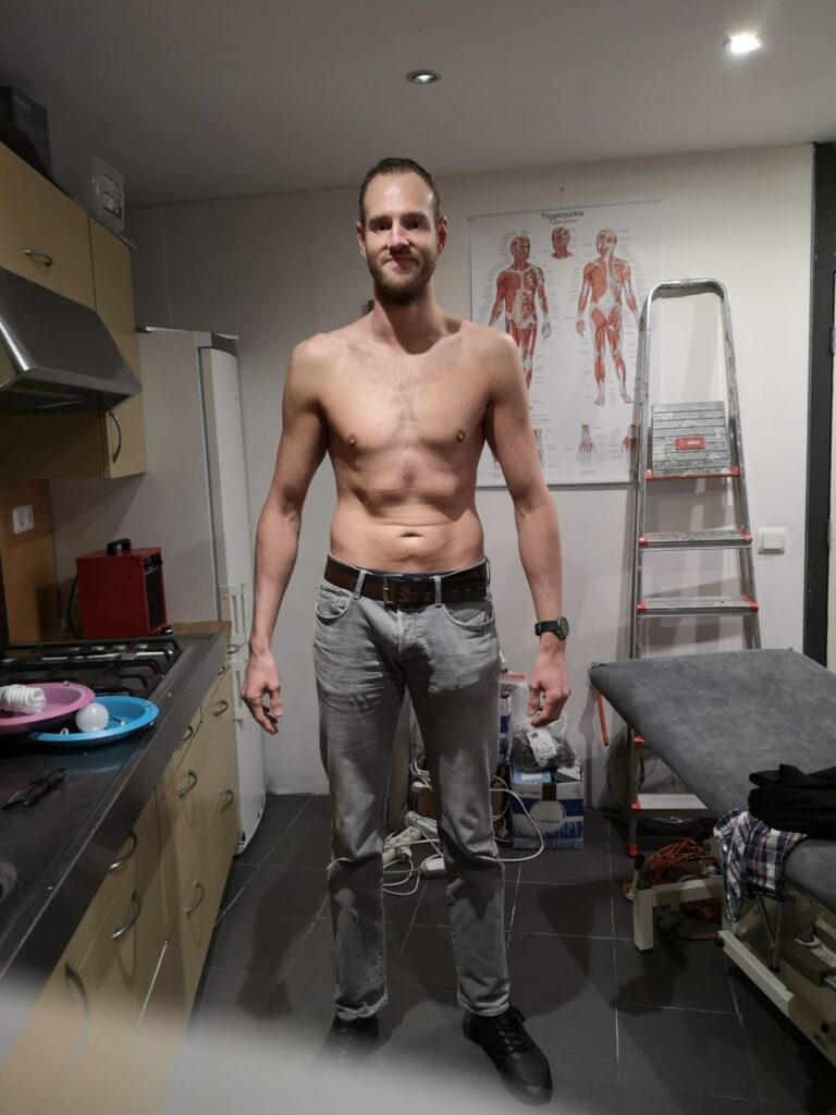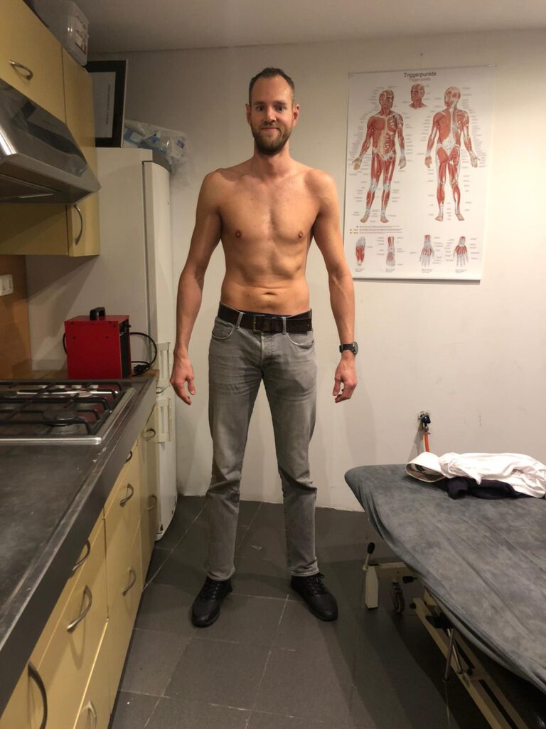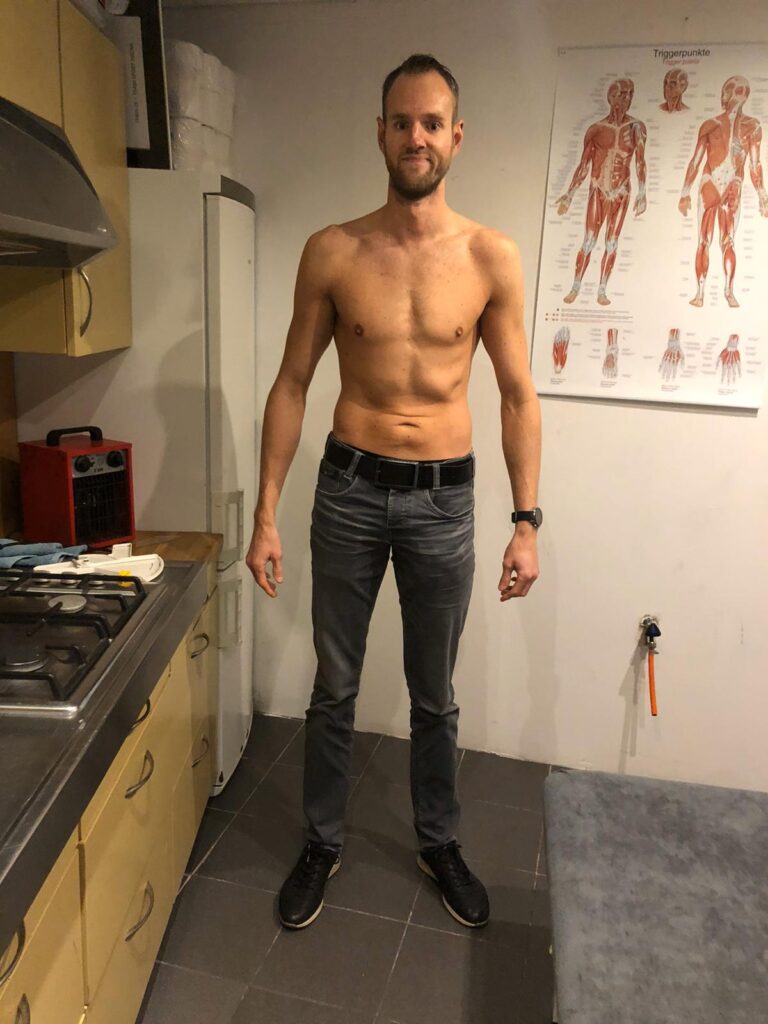 Hier heb ik uiteraard ook zelf de Spiermassa Protocol gedaan en zoals je ziet ben ik een paar kilo aangekomen zonder al te veel vet.