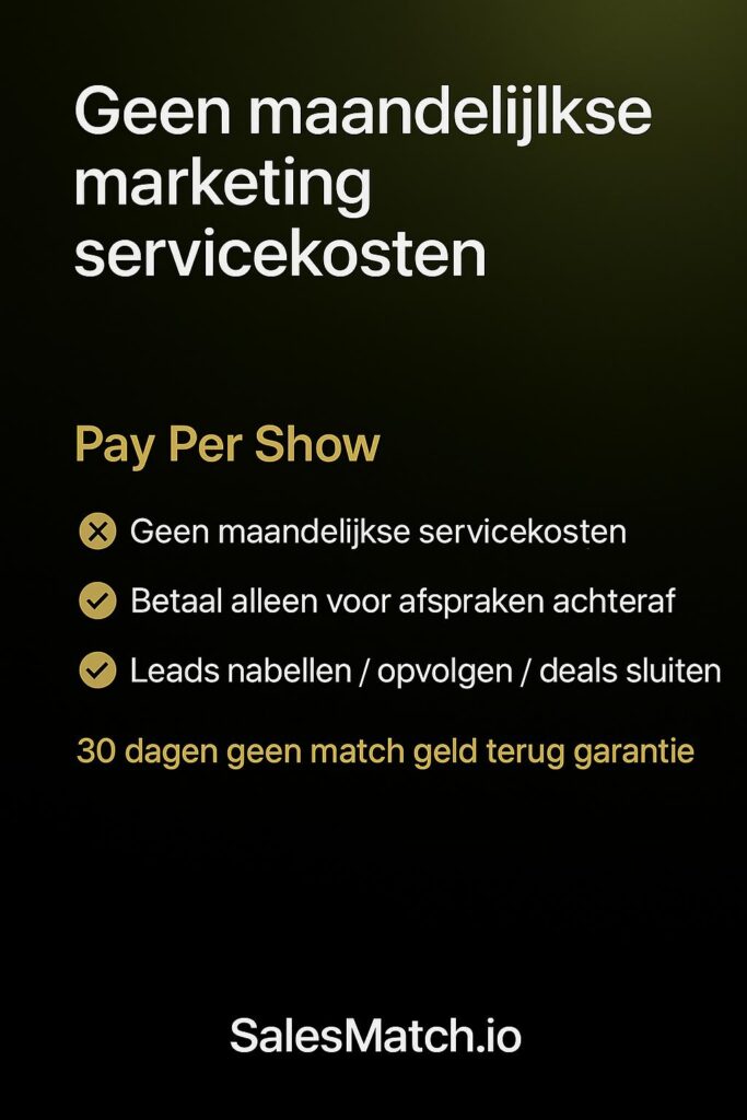 Het platform biedt een unieke aanpak voor bedrijven die sales willen uitbesteden. Je betaalt alleen voor echte resultaten, niet voor beloftes. Dit ‘No Cure No Pay’ model zorgt dat je geen risico loopt met je budget.