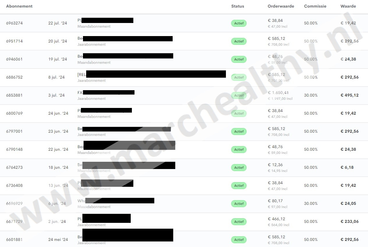 Je hebt alleen een computer en internet nodig. Daarnaast kan je ook abonnementen promoten zoals ik doe en daardoor heb ik bijna €1500 volledig passief! Dit zijn voorbeelden van nieuwe abbo’s die ik in juni en juli erbij heb gekregen. Zo pak ik er elke maand een paar.