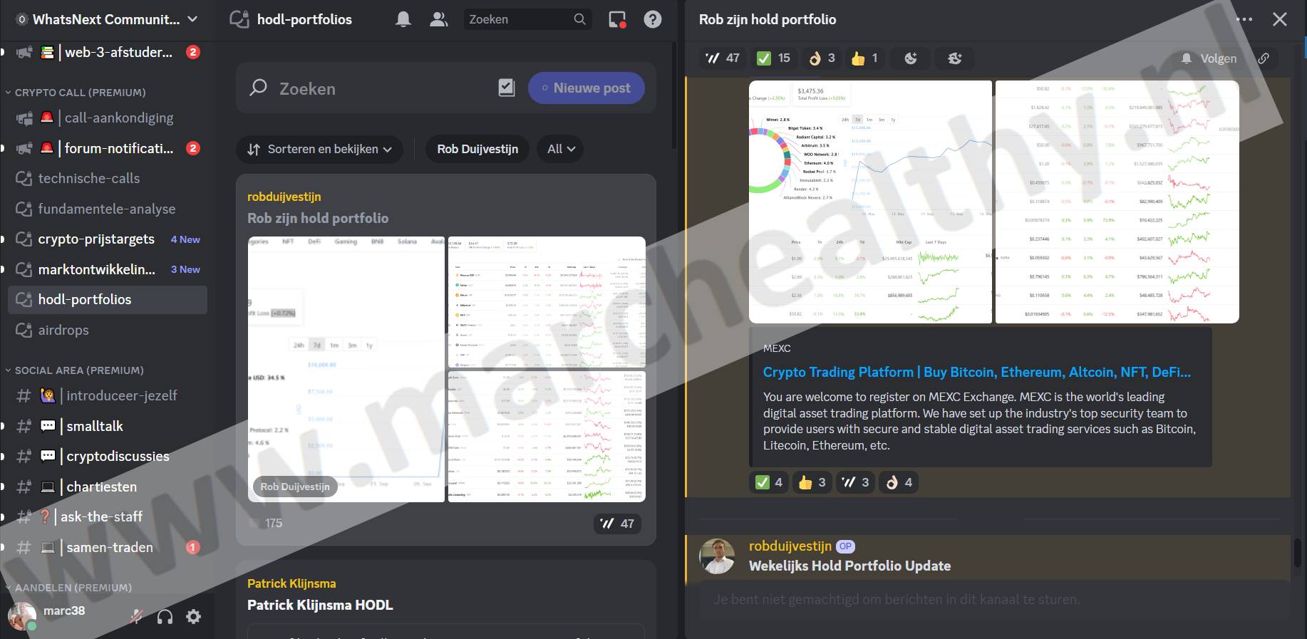 Je leert veel van deze openheid. De experts delen hun kennis en ervaring met jou. Zo kun je zelf betere keuzes maken voor je eigen investeringen. Het helpt je om slimmer te handelen in de cryptomarkt. Na de portfolio’s kijken we naar de dagelijkse updates in Discord.