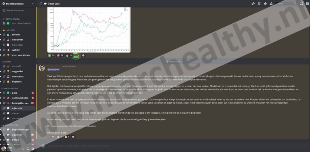 Blockchain Bulls heeft leden van alle niveaus. Beginners en experts praten er samen. Je kunt vragen stellen en leren van anderen. De sfeer is open en behulpzaam. Zo groei je snel in je crypto-kennis. Hier kan je momenteel starten voor 39,99 per maand, wel geeft Andries aan binnenkort te verhogen.